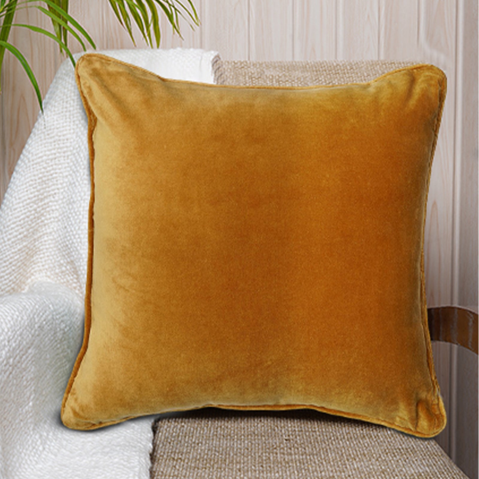 Handcrafted from soft cotton velvet, this amber yellow cushion brings understated elegance to any space. The plush texture and deep, muted tone create a sense of quiet luxury, making it...