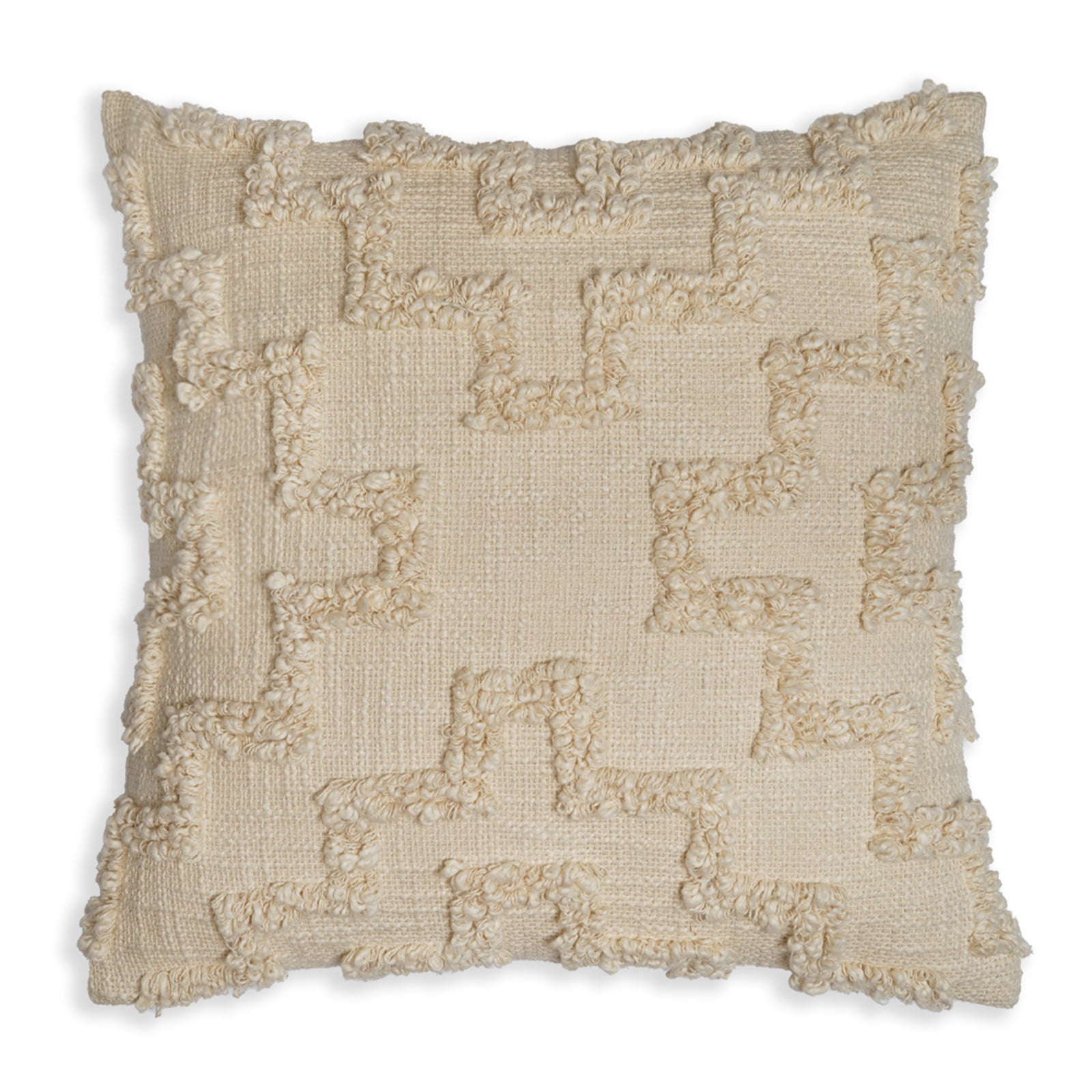 Fuzzy Maze - Earthy Square Textured Cushion with Handcrafted Loop Embroidery