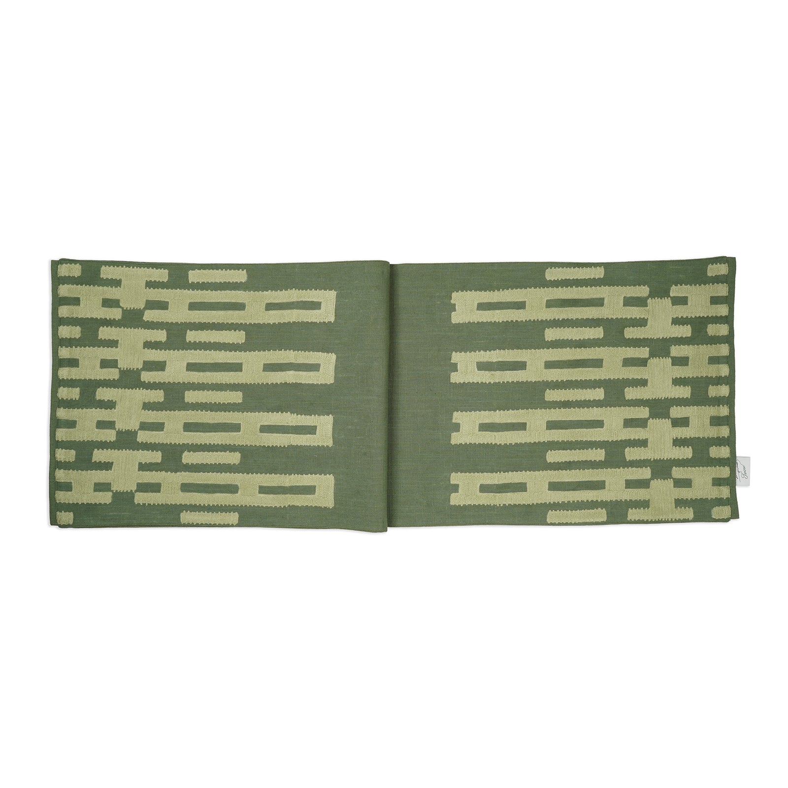 The Link on Green Tablerunner takes its name from the stitched links that line each end—soft, geometric, and quietly intentional. They add just the right amount of rhythm to the jade green base, bringing structure without taking over. It’s the kind of piece that ties everything together—visually calm, thoughtfully detailed, and easy to live with.