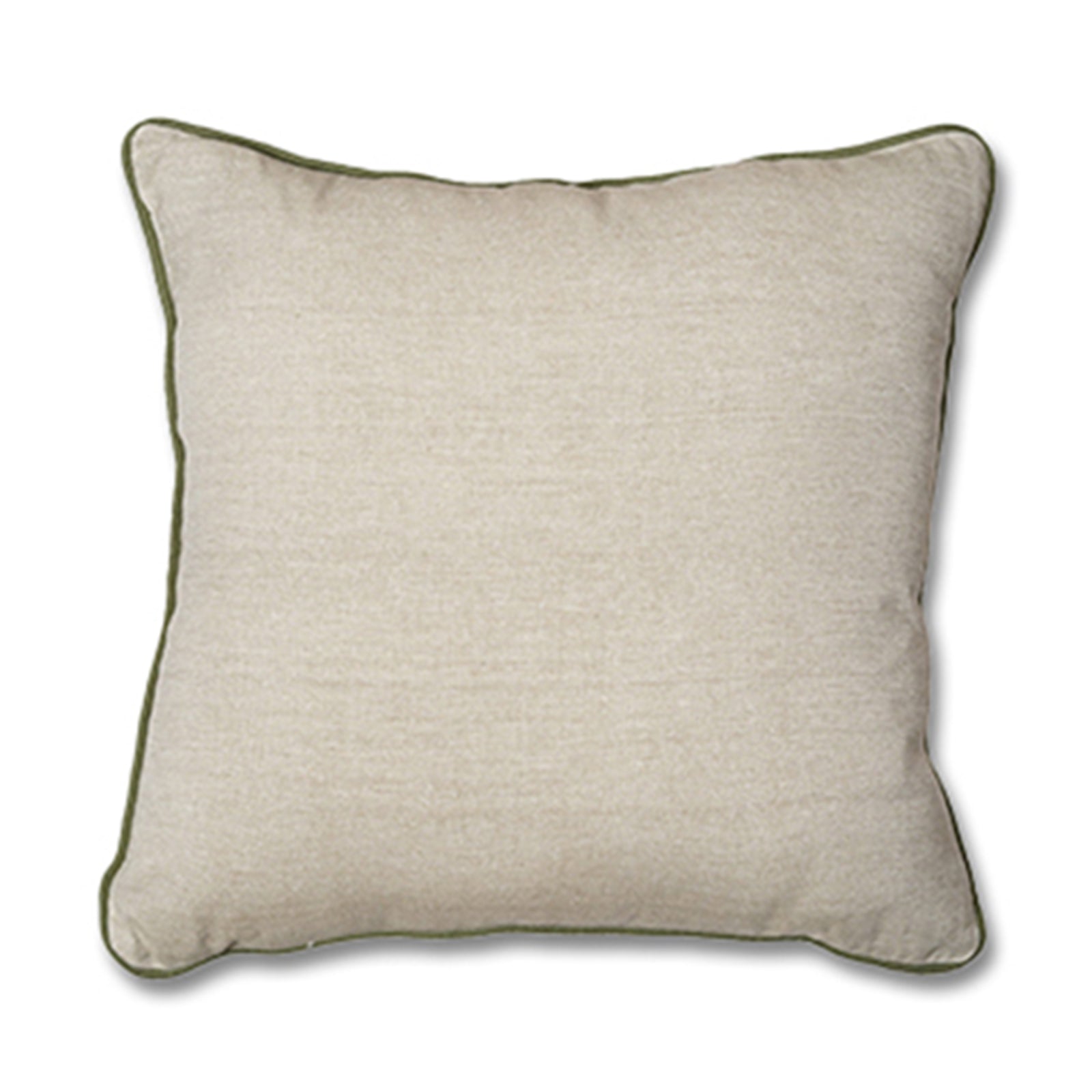Simplicity - Square Cushion in Neutral Beige with Delicate Green Piping