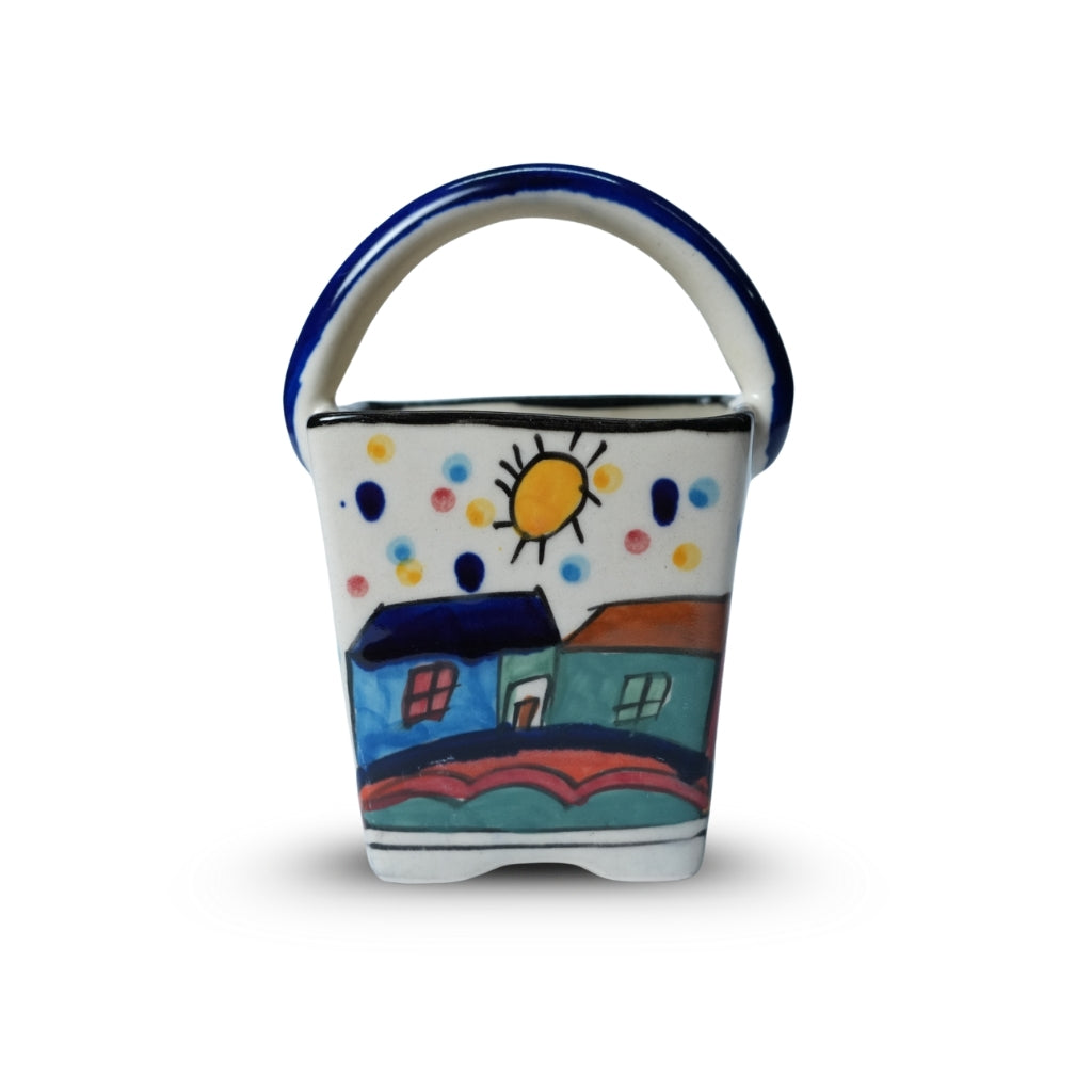 • Vibrant Cityscape Design: Inspired by charming Turkish towns, the cutlery stand features a lively hand-painted city motif with colorful houses, rolling hills, palm trees, and playful dotted accents — bringing warmth and storytelling to your table.